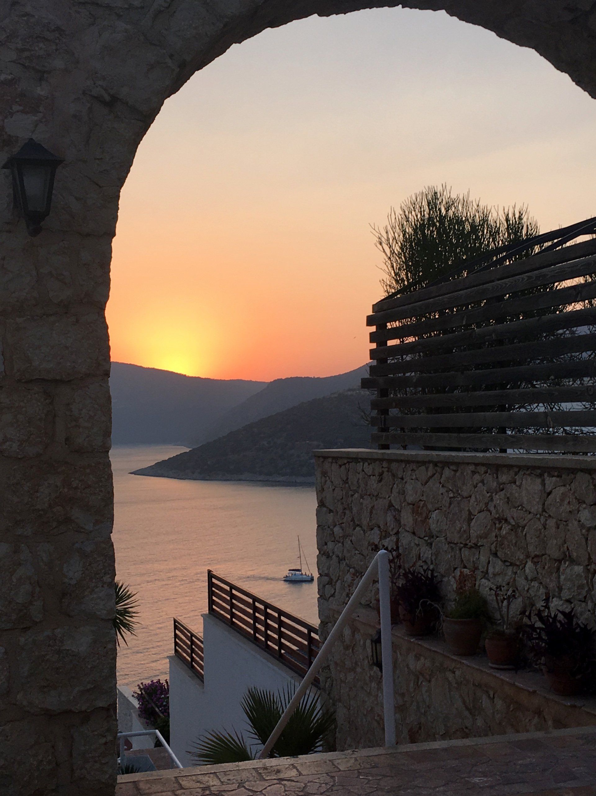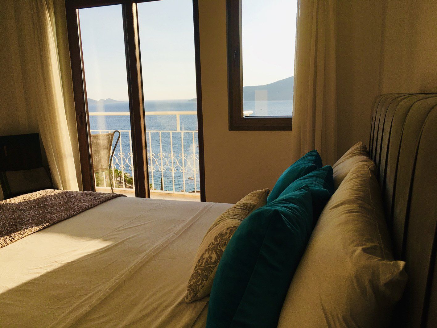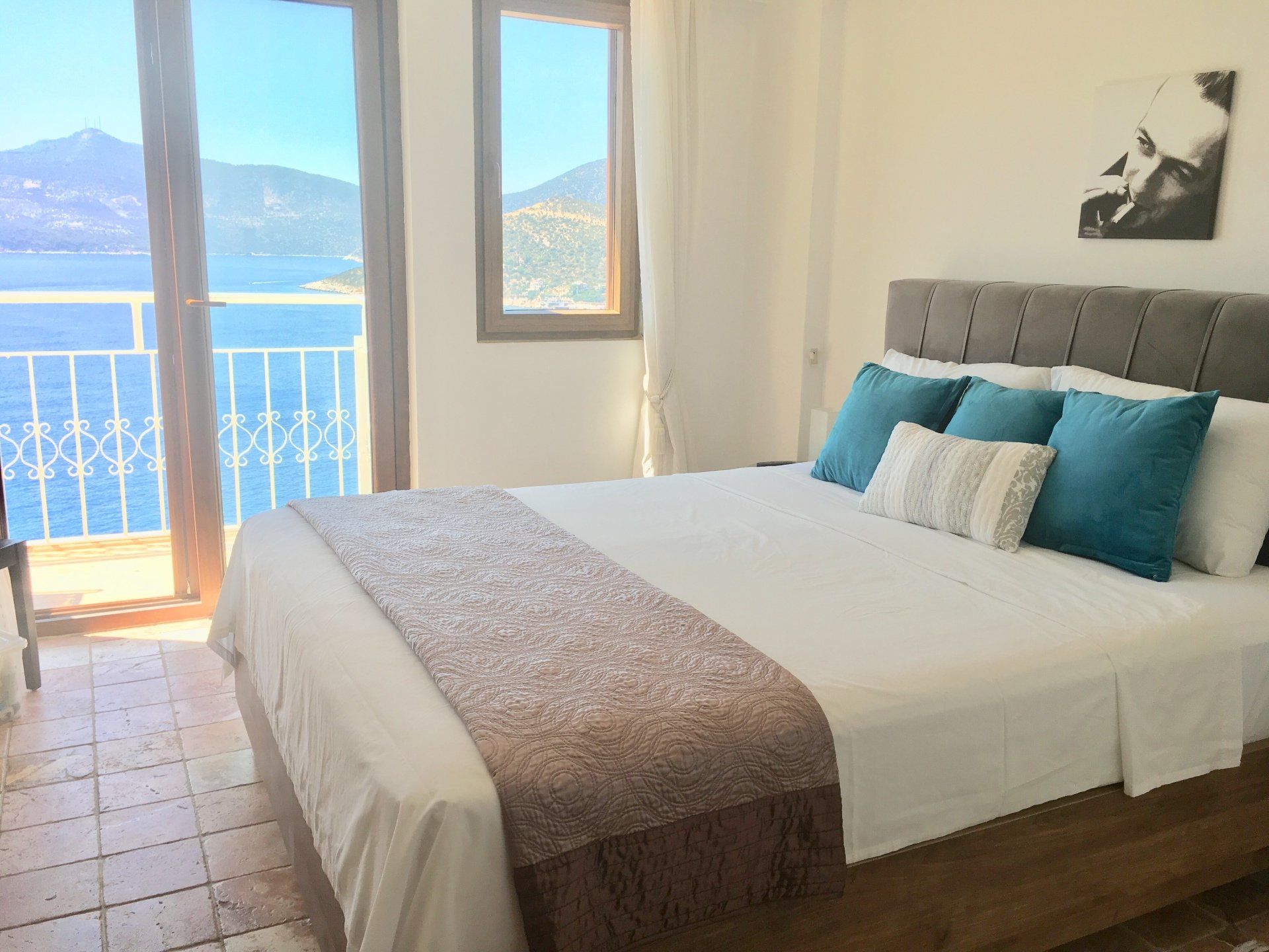 All rooms lead to a South West facing balcony or terrace, perfect for viewing the Mediterranean sea and the colourful Turkish sunsets. The lower floor has a larger terrace with two private sun loungers, a marble table with four chairs and an outdoor sofa to simply relax and watch the elegant Gulets glide in and out of the harbour.