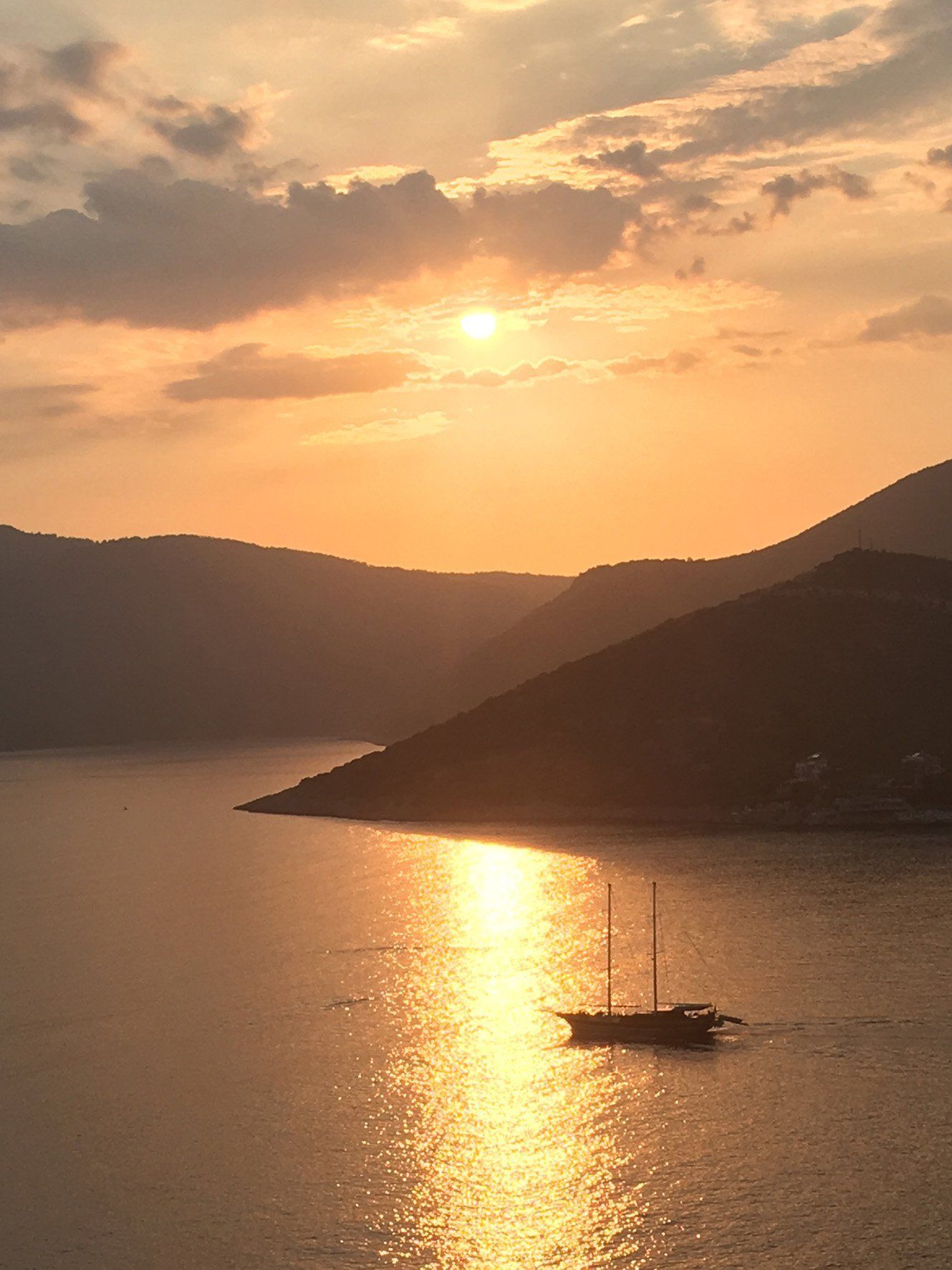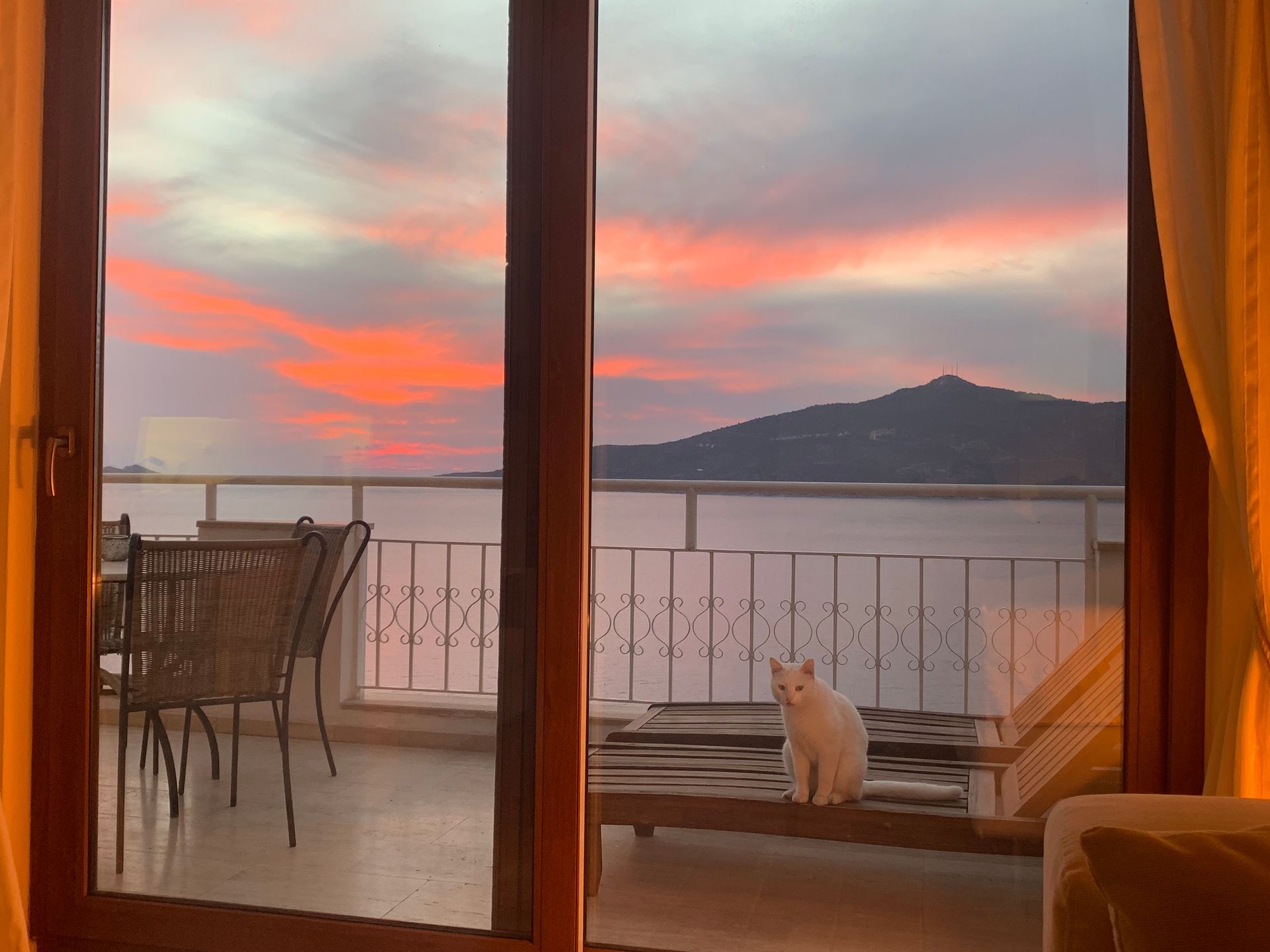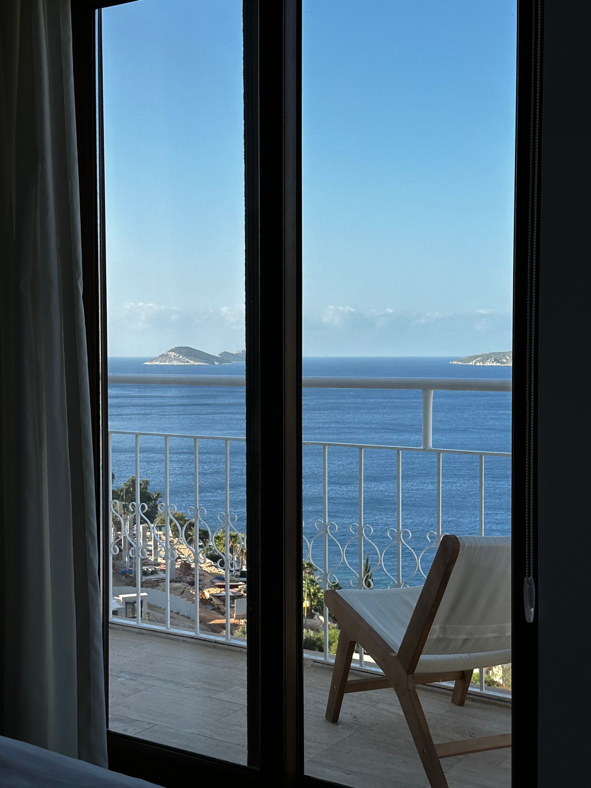 All rooms lead to a South West facing balcony or terrace, perfect for viewing the Mediterranean sea and the colourful Turkish sunsets. The lower floor has a larger terrace with two private sun loungers, a marble table with four chairs and an outdoor sofa to simply relax and watch the elegant Gulets glide in and out of the harbour.