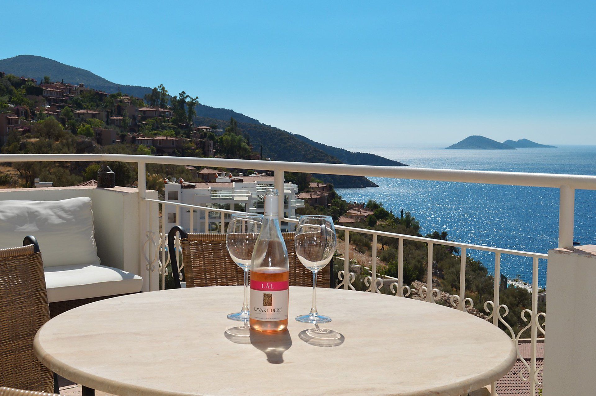 Number Two Komurluk Apartments is a stunning duplex penthouse apartment (sleeps 4) available for holiday rentals in the small town of Kalkan, Turquoise Coast in the South West of Turkey. The apartment is located in the exclusive Komurluk area of Kalkan, and boasts unrivalled panoramic views of the Mediterranean sea, Mouse and Snake Islands and the local harbour. A car is not essential as Komurluk is easy walking distance to all the facilities in town, the harbour and local beach.